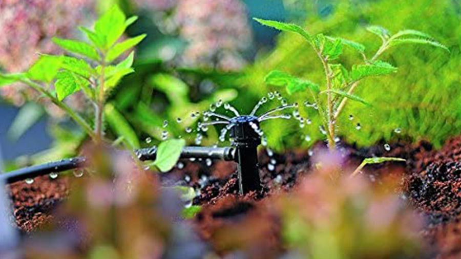 La micro-irrigation ou l’arrosage « goutte à goutte » permet d’arroser sans gaspiller l’eau et sans effort les plantes ou les semis. Grâce à un réseau de tuyaux étroits, combiné avec des goutteurs et/ou asperseurs, l’eau arrive aux pieds des plantes pour que les racines en profitent directement, sans pertes par évaporation ou ruissellement. La terre reste humide et les végétaux absorbent lentement ce dont ils ont besoin pour leur croissance.