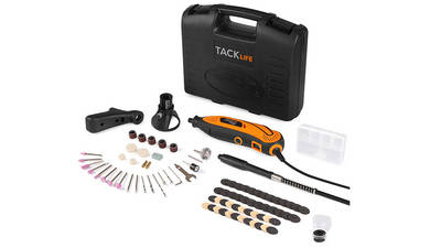 L’outil rotatif multifonctions RTD37AC TACKlife est livré avec de nombreux accessoires, faciles à installer et rapides à changer, pour s’adapter à toutes les applications et aux besoins de l’utilisateur. Il suffit de choisir tout simplement le bon accessoire pour passer du perçage au polissage, du polissage à la découpe, etc. L’utilisateur profite d’une machine performante, dotée d’un moteur de 200 Watts, offrant une puissance optimale et une vitesse élevée jusqu’à 40 000 tours par minute, pour accomplir en toute simplicité les travaux de fraisage, meulage, découpage, polissage, ou encore de gravure.