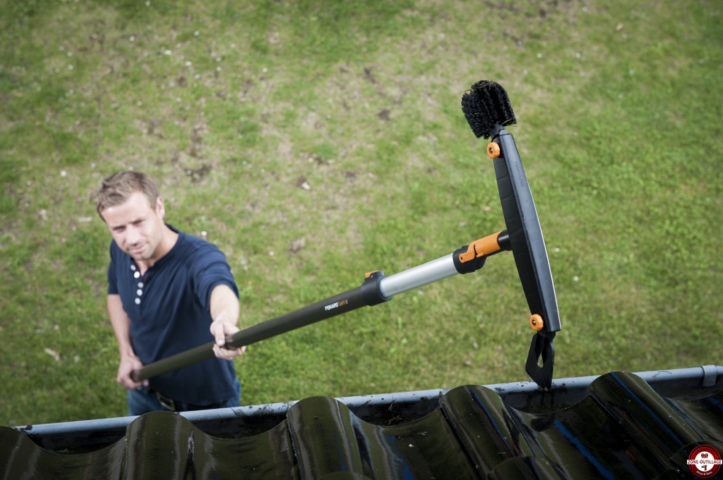 Pour un travail sûr et optimal, Fiskars propose son nouveau nettoyeur de gouttières Fiskars QuikFit. 2 en 1, l’outil dispose d’un grattoir qui permet de retirer ou de repousser les saletés accumulées, et d’une brosse ronde qui sert à éliminer les débris les plus fins tout en nettoyant les bords de la gouttière.